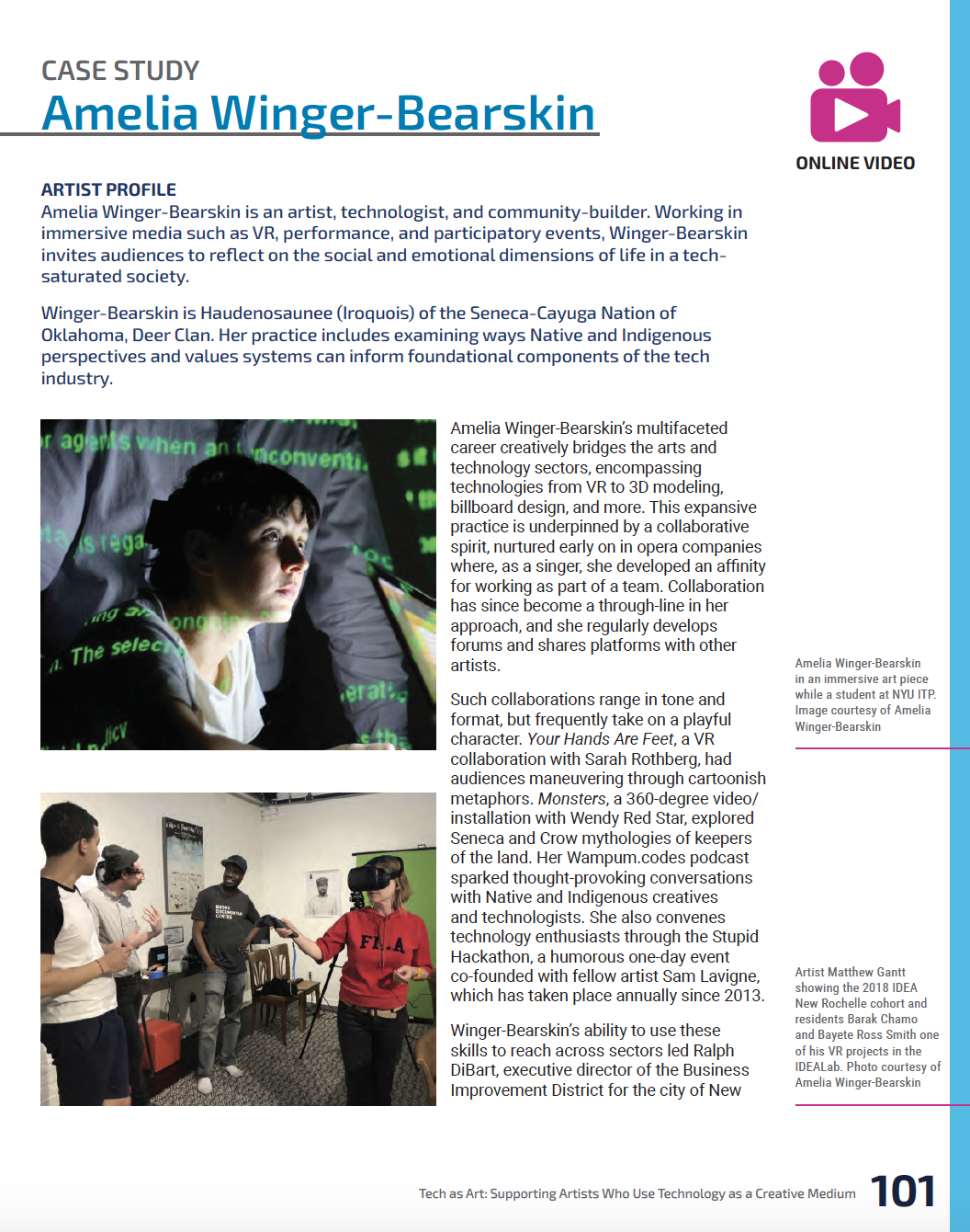 This report is the result of a two-year research initiative exploring the multifaceted creative practices of artists who engage with digital technologies. The research examines the creative infrastructure supporting tech-focused artistic practices and provides insight into the existing challenges and opportunities faced by artists and organizations working at the intersection of arts and technology. Tech as Art is part of an Arts & Technology Field Scan conducted by the National Endowment for the Arts in partnership with the Ford Foundation and the Knight Foundation. 120 pp. June 2021